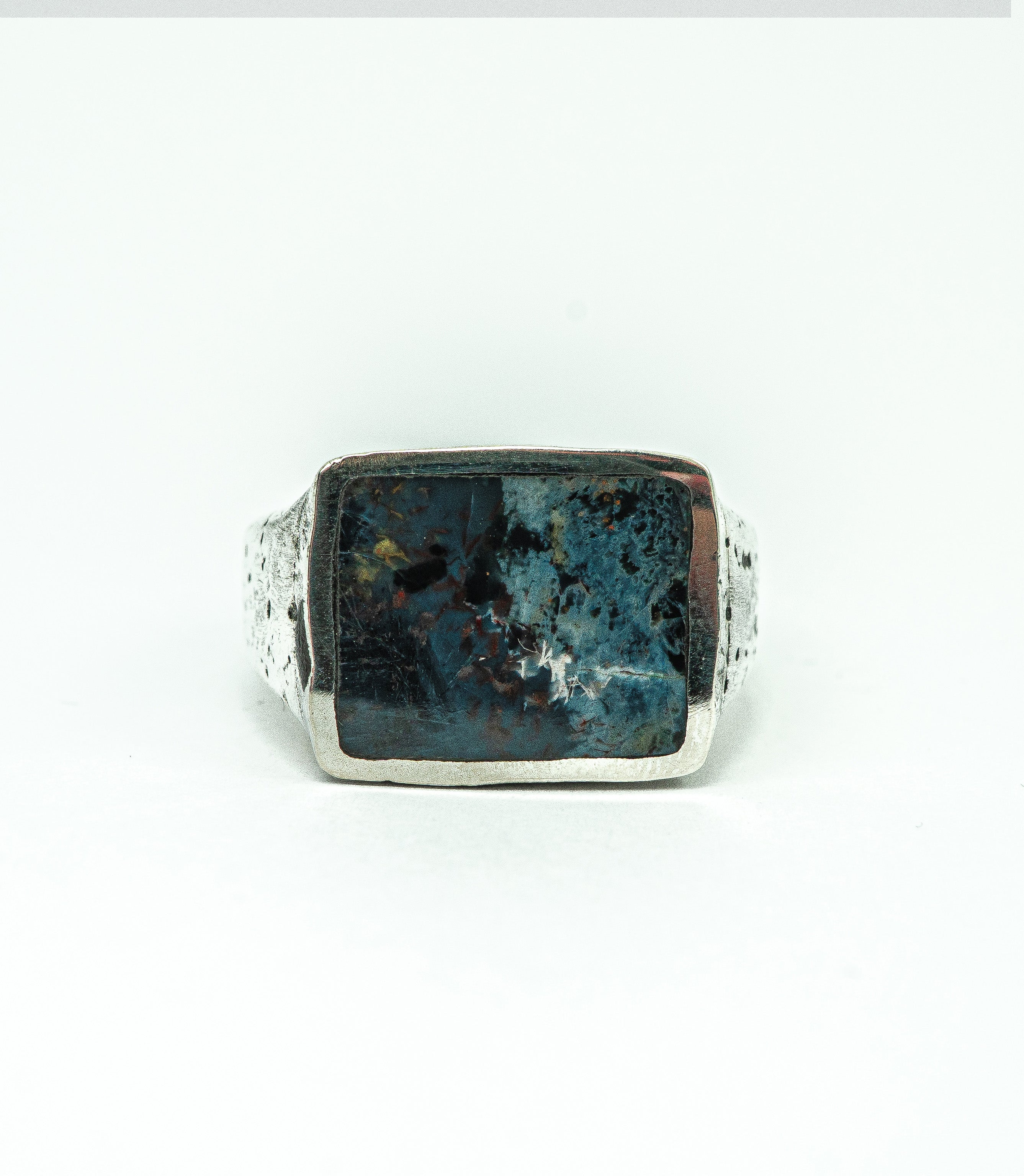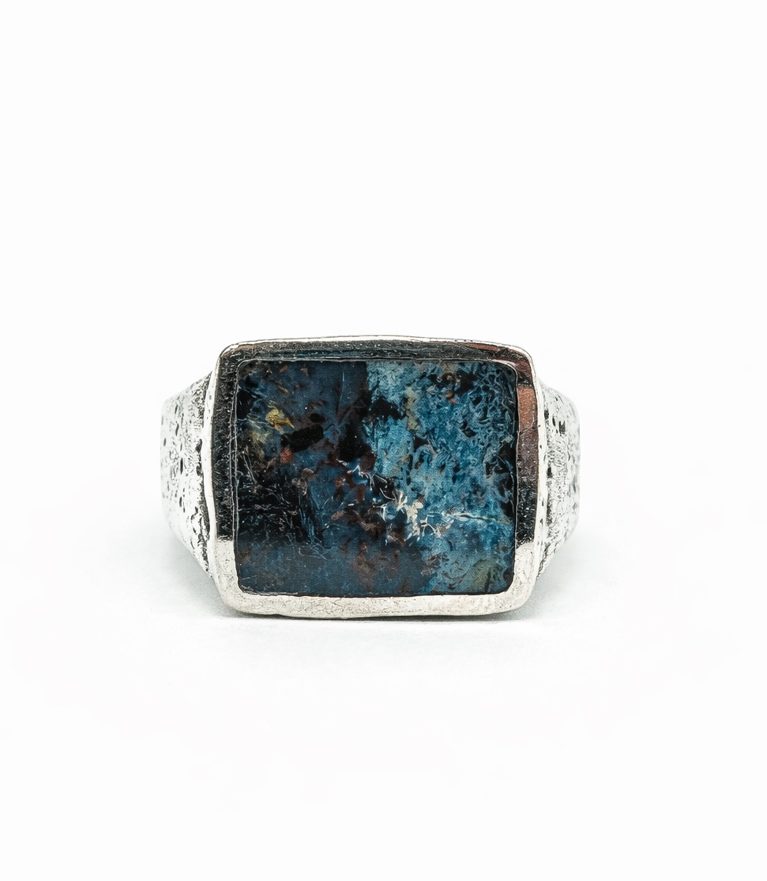 Each piece carries visible maker’s marks and a rugged silver patina that deepens with time — a ring made for the ones who never settle.