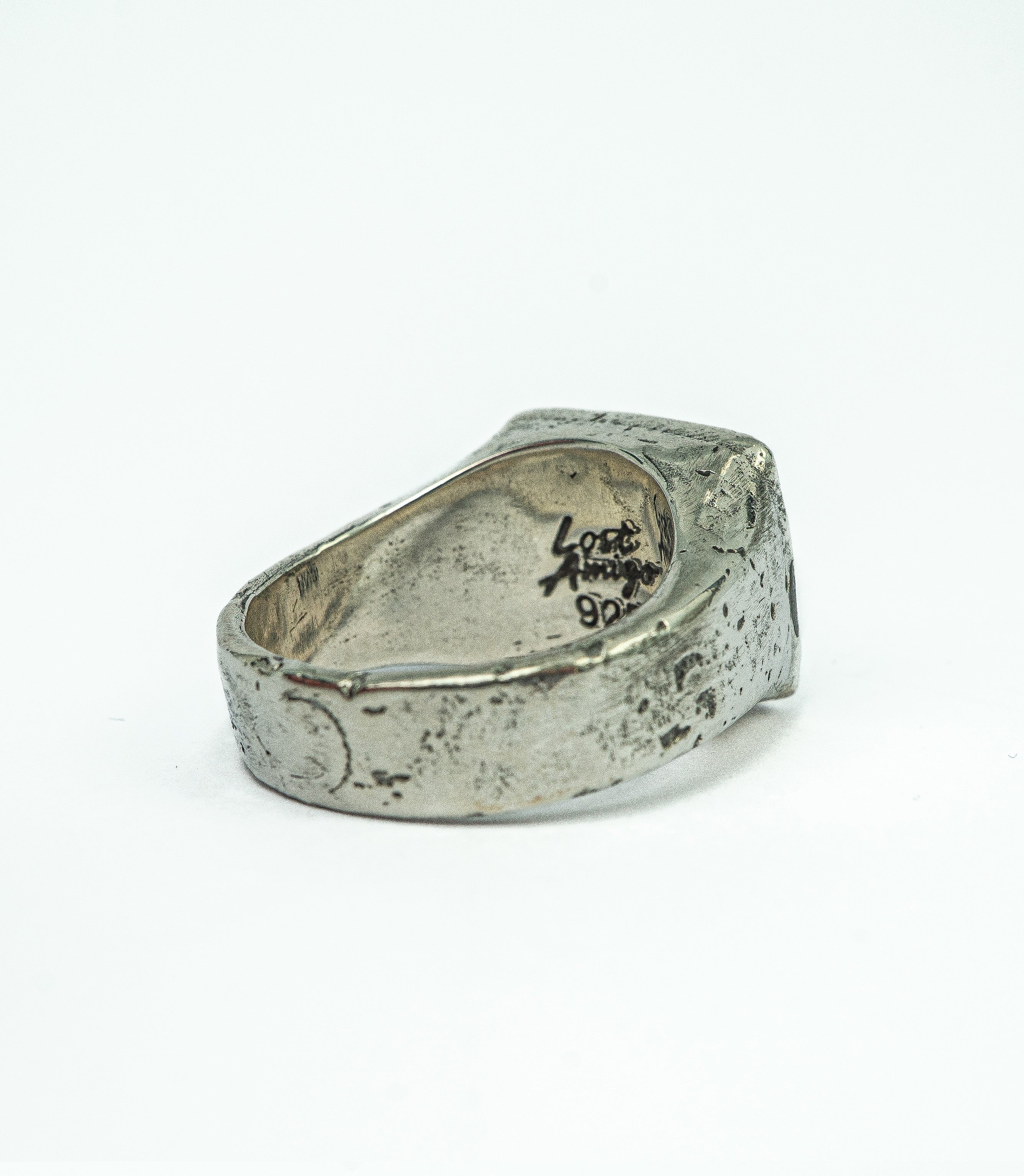 Each piece carries visible maker’s marks and a rugged silver patina that deepens with time — a ring made for the ones who never settle.