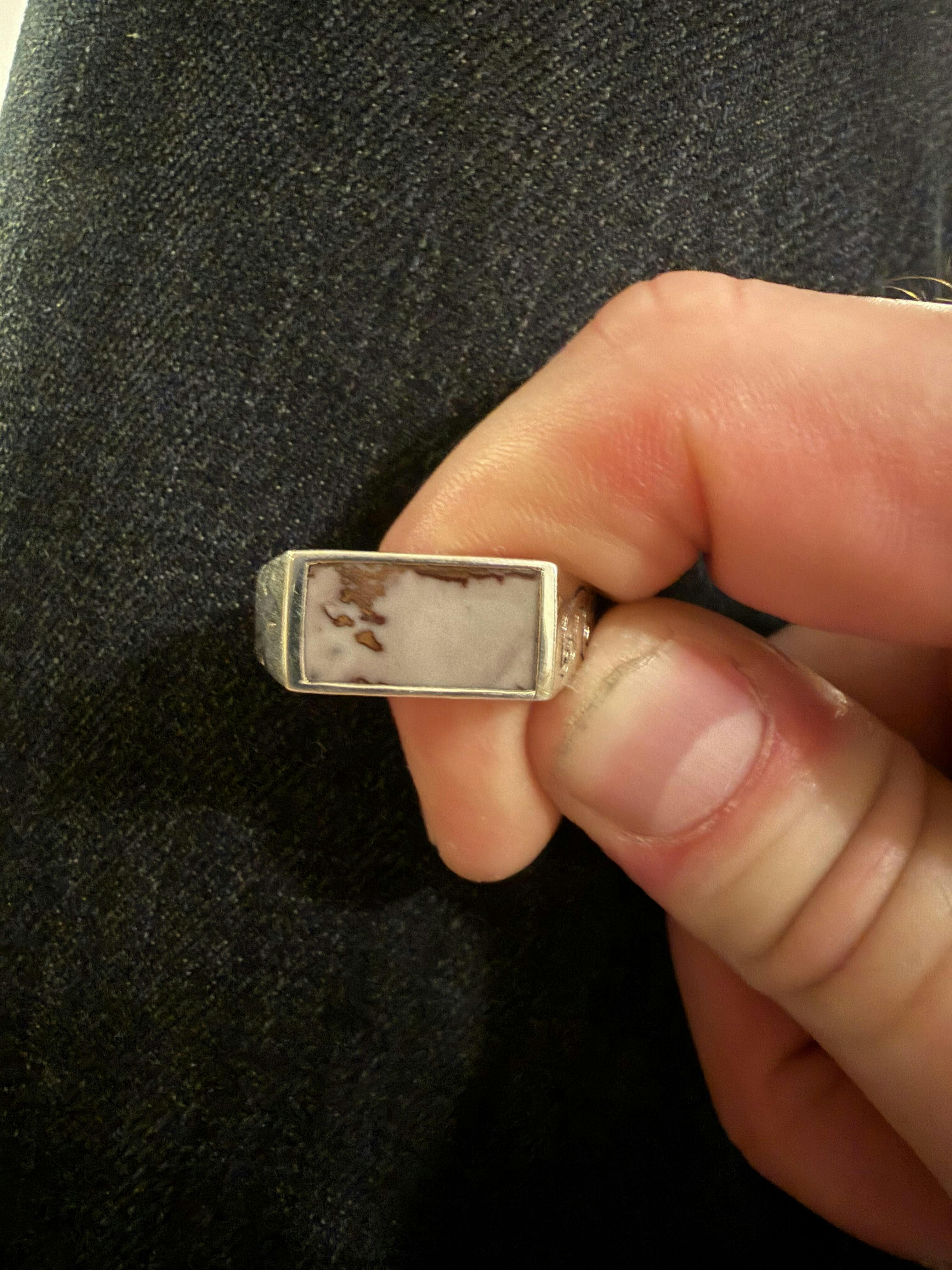 Signature Snake Band Signet ring with a solid hand cut & polished speckled jasper semi-precious stone bezel set