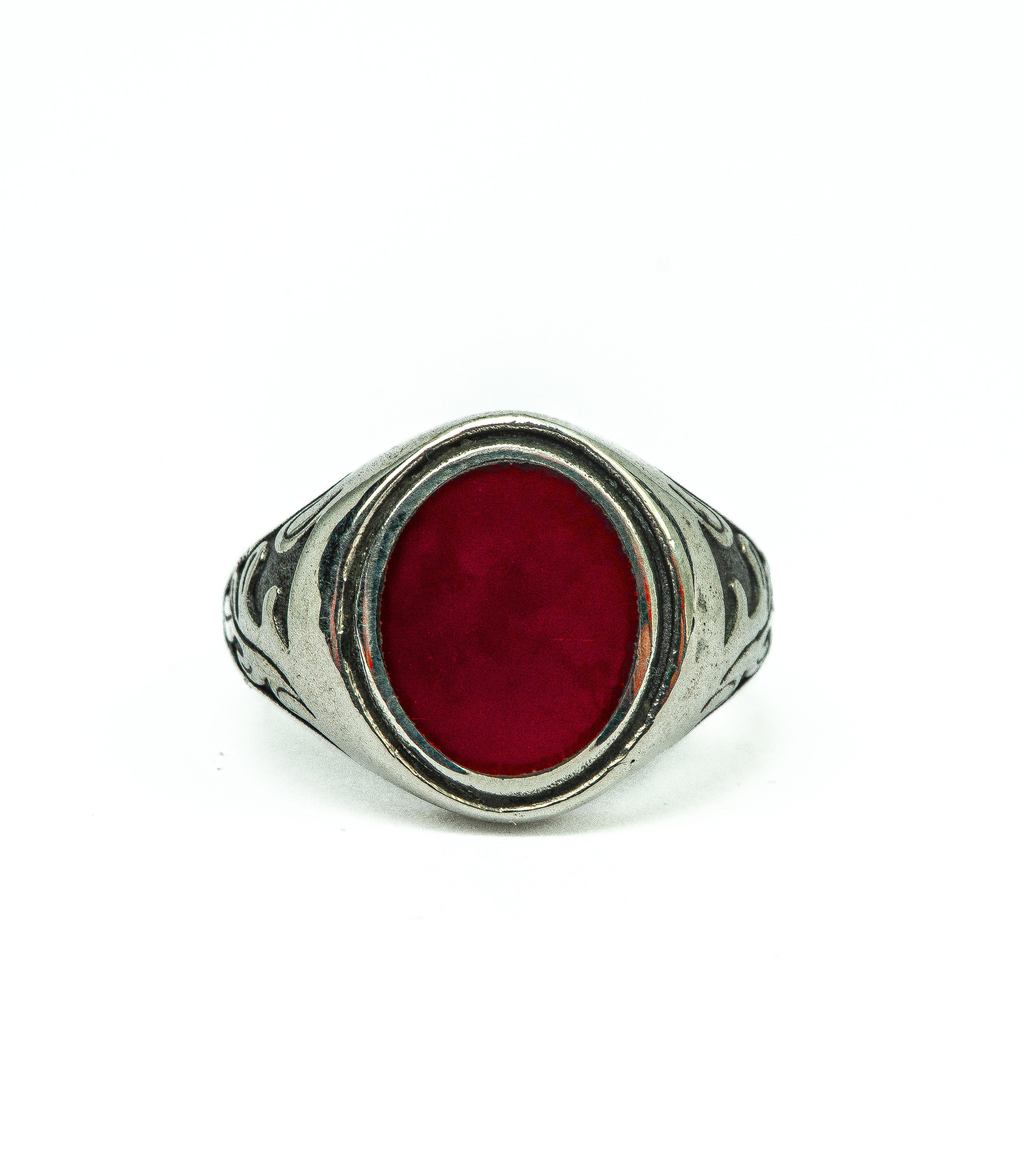 Featuring a bold semi-precious 100% natural Red Carnelian stone — hand-cut and left with subtle imperfections that tell its story.
