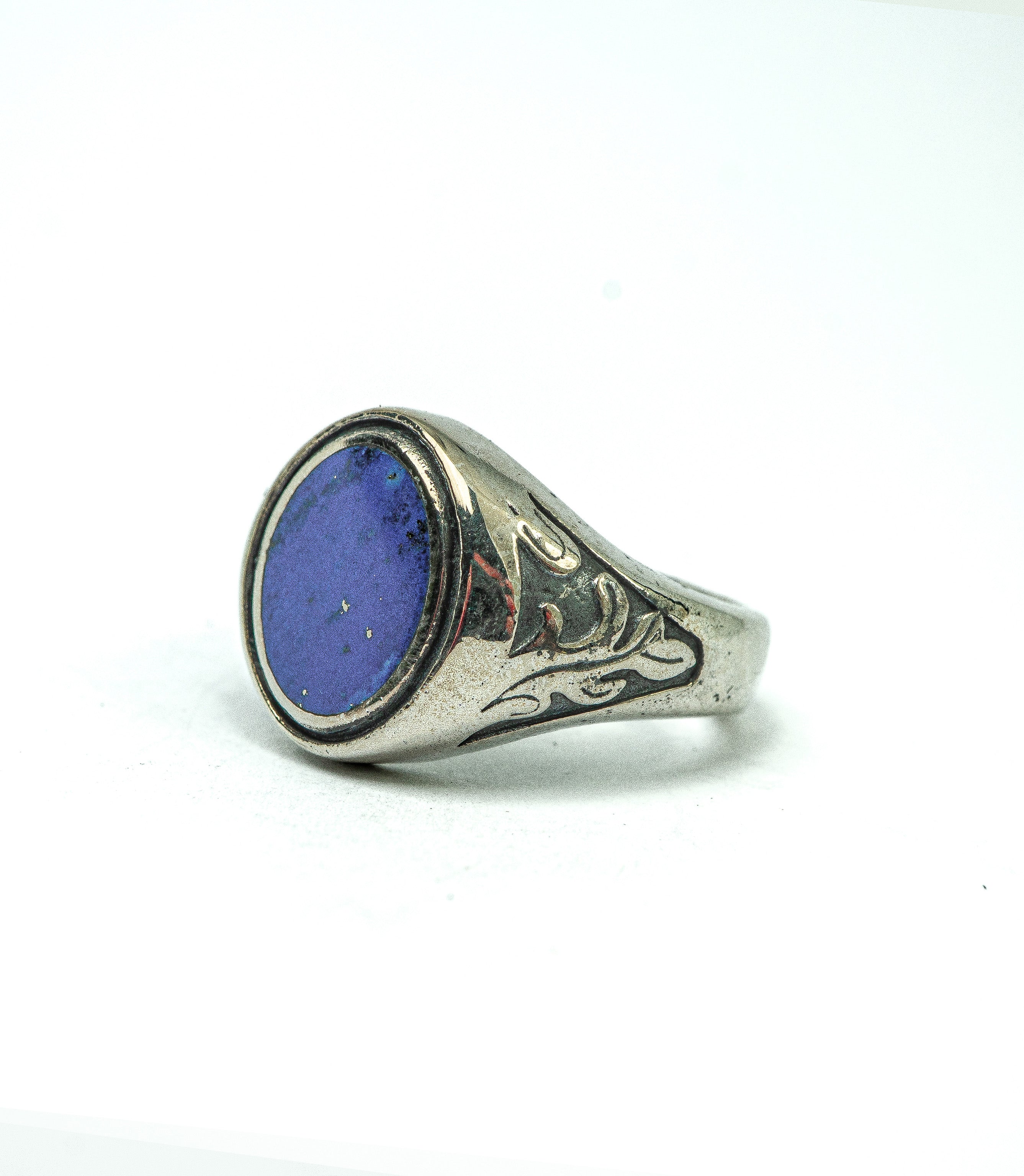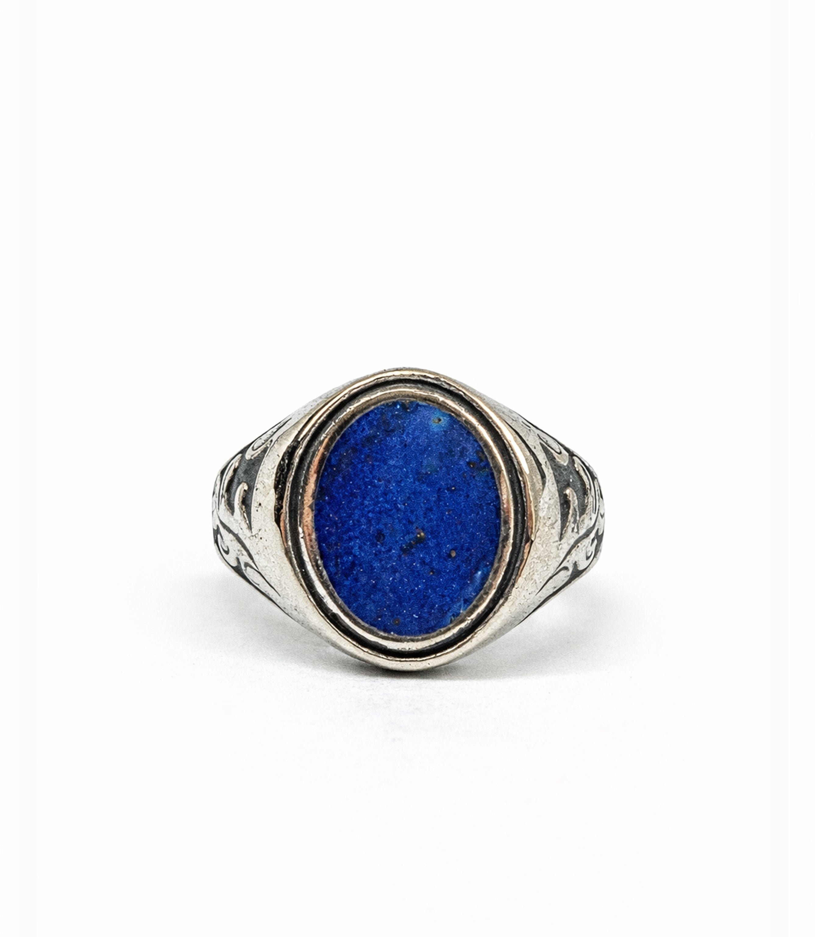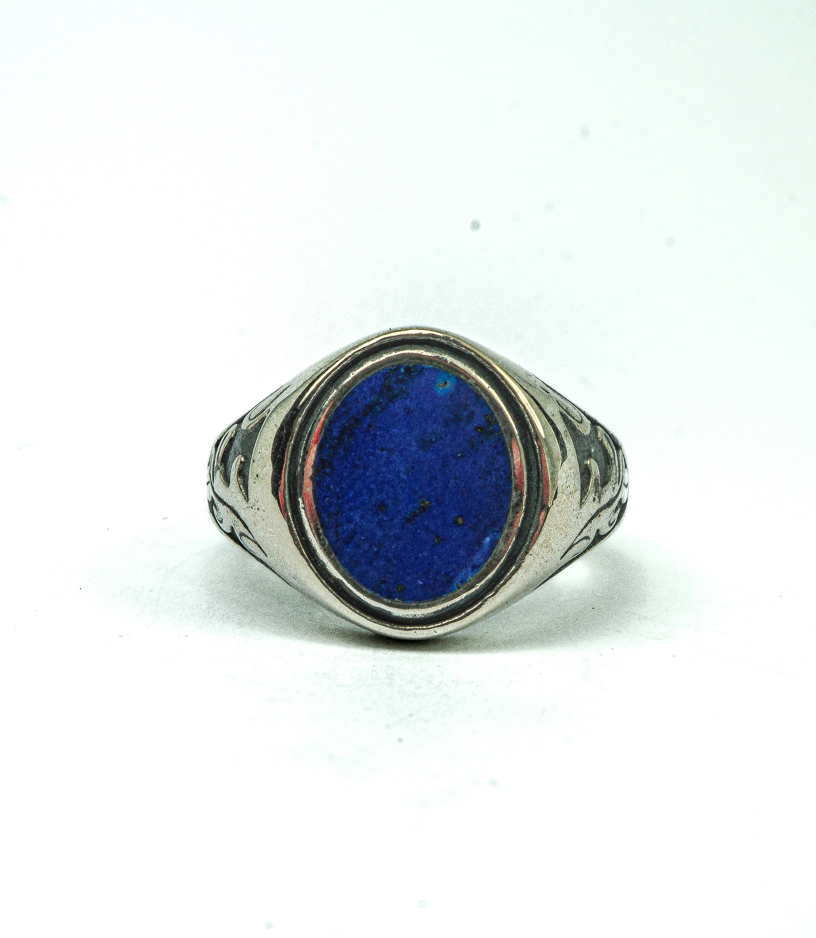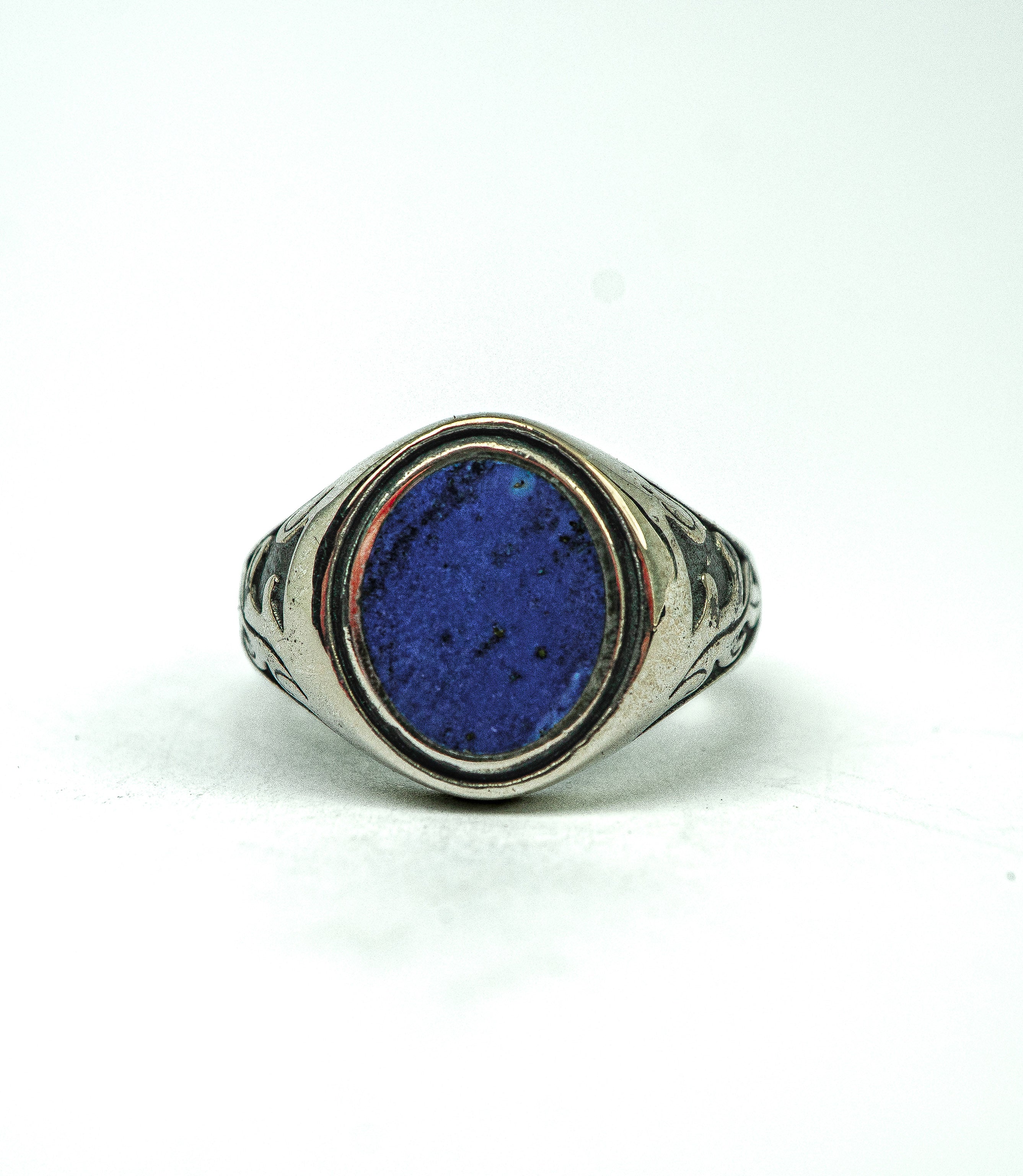Featuring a bold semi-precious 100% natural Lapis Lazuli stone — hand-cut and left with subtle imperfections that tell its story. Forged in solid 925 silver with visible maker’s marks and a raw patina that will deepen with wear.